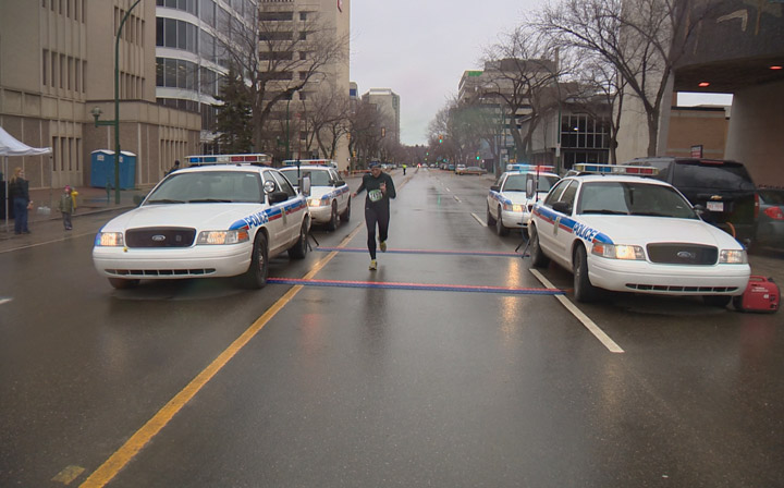 SASKATOON – Around 300 runners braved rainy conditions on Sunday for the annual Saskatoon police half marathon.