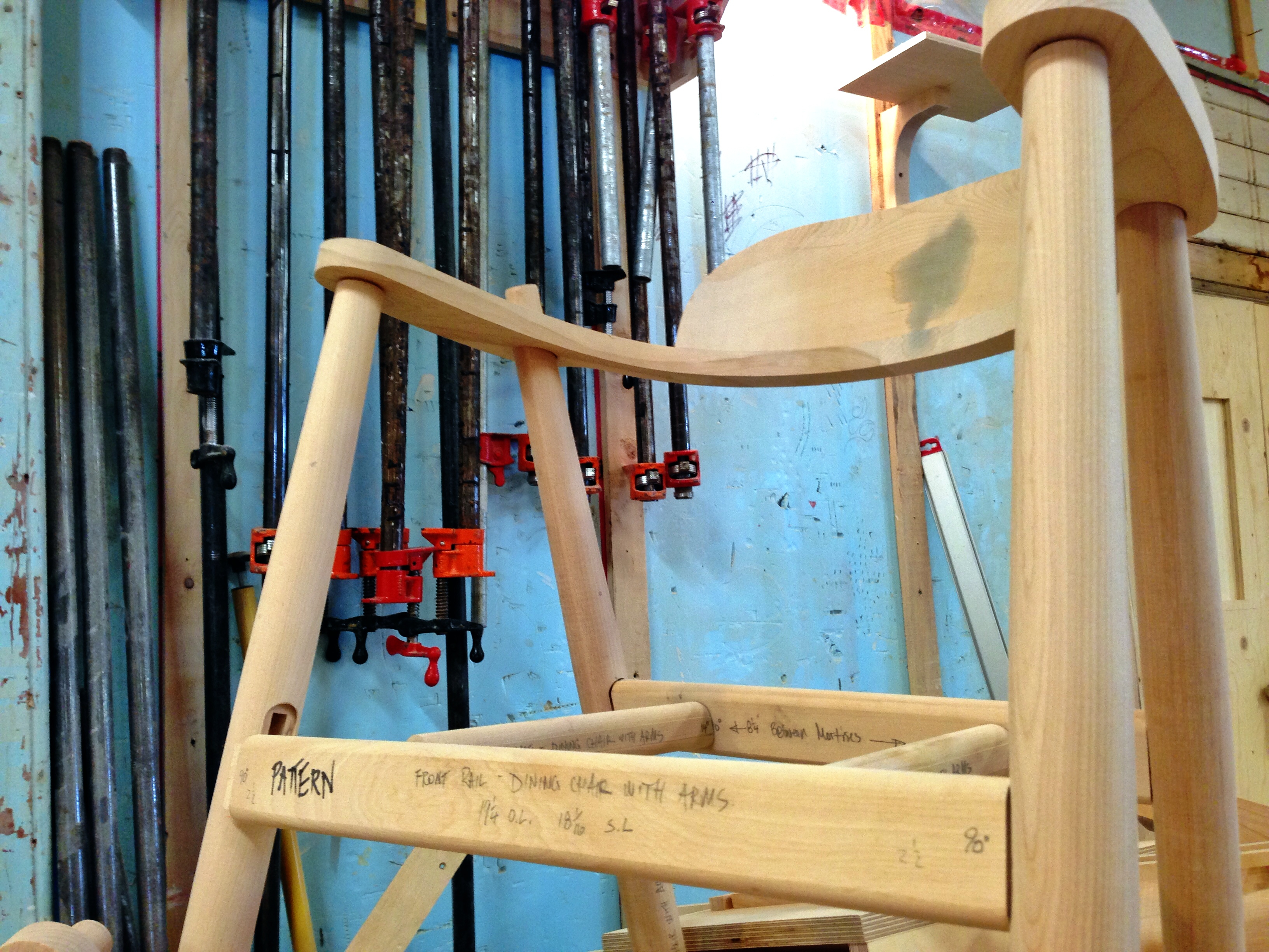 Today, he is putting together a lounge called the “Get Your Feet Up.” Freake, meanwhile, is building a Punt Chair, which sits behind the desks in the guest rooms.