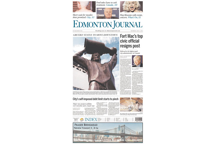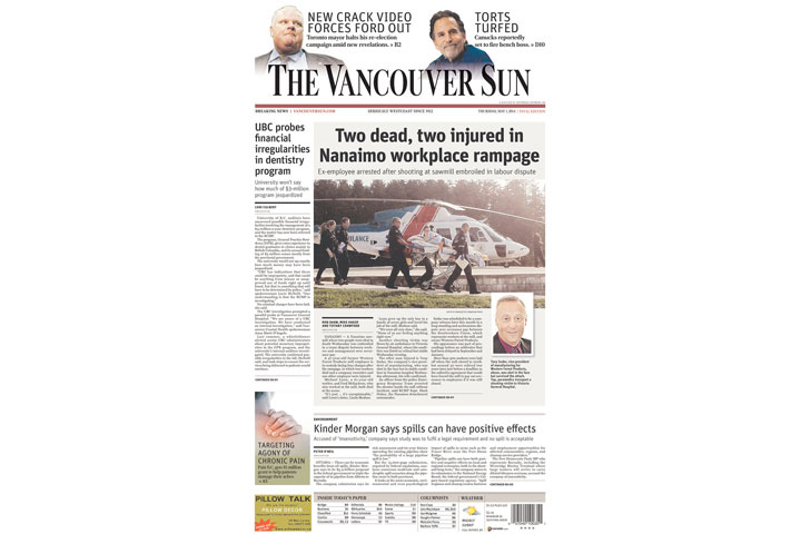 TORONTO — The face of the mayor of Canada’s largest city appears Thursday morning on the front pages of many of the country’s major newspapers.
