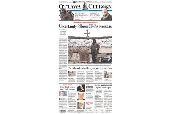 The latest developments in the saga of Rob Ford, who announced Wednesday he is taking a leave of absence to seek treatment for alcohol abuse, dominate the front pages of his hometown newspapers — The Toronto Star and Toronto Sun — as well as national papers The Globe and Mail and National Post.