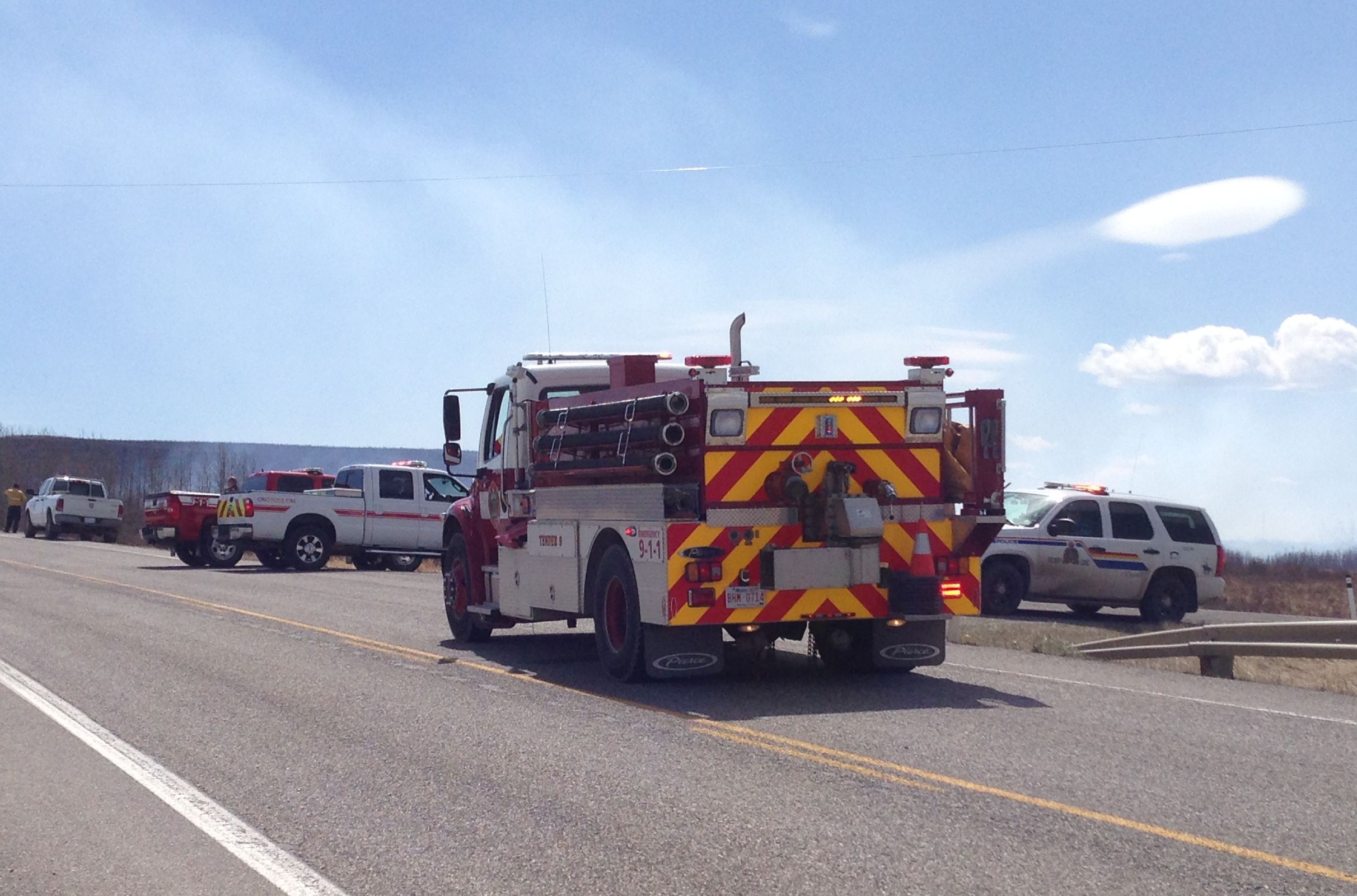 UPDATE AT 12:51 P.M. MT ON MAY 2: 21-year-old Dale Christopher Aldrich and 24-year-old Marc Pierre Boulanger of Sundre each face four counts of arson, after fireworks were thrown from a vehicle and sparked the grassfires.