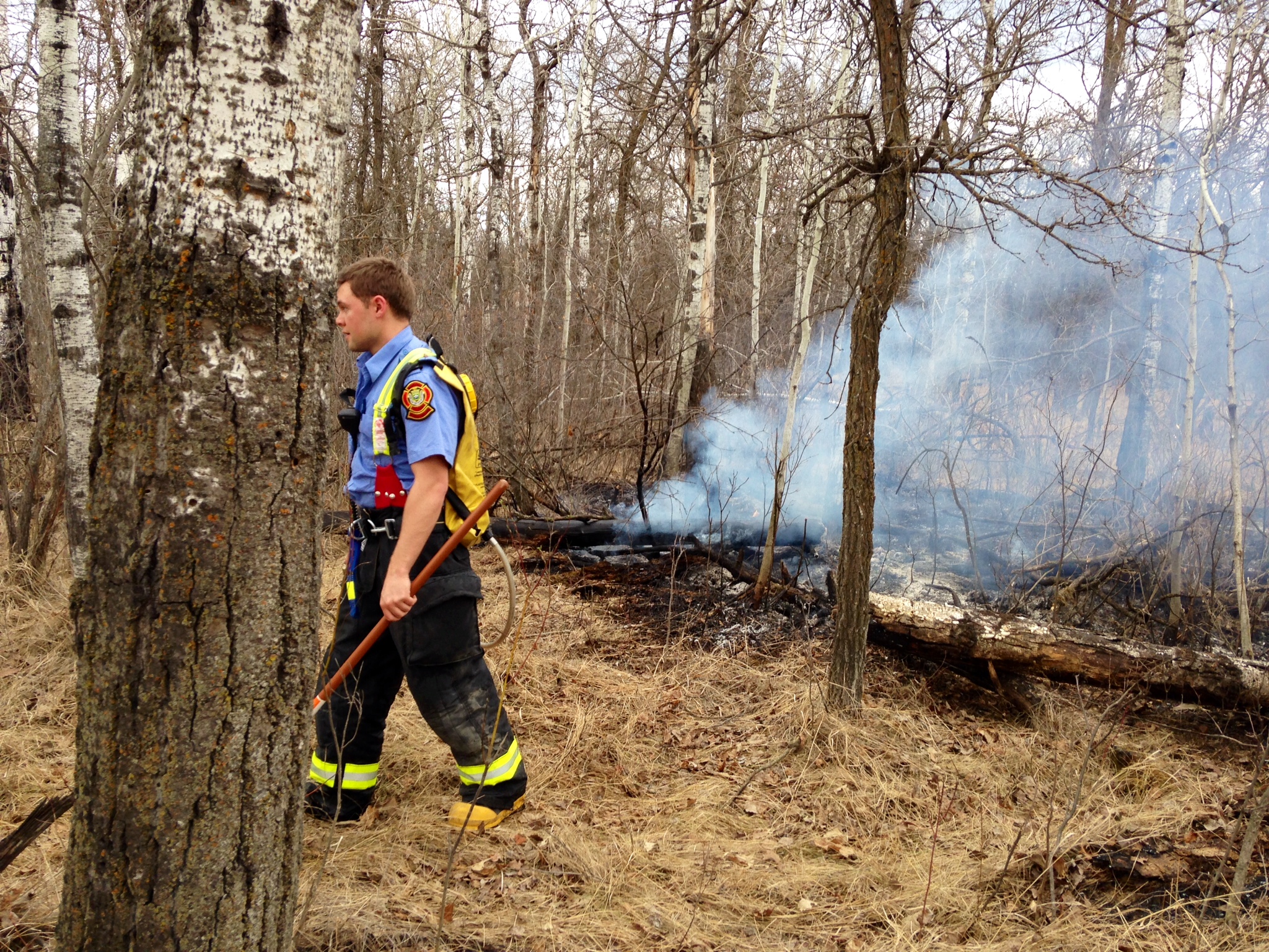 Fire crews were called to the Assiniboine Forest near Eve Werier Memorial Pond Sunday afternoon.