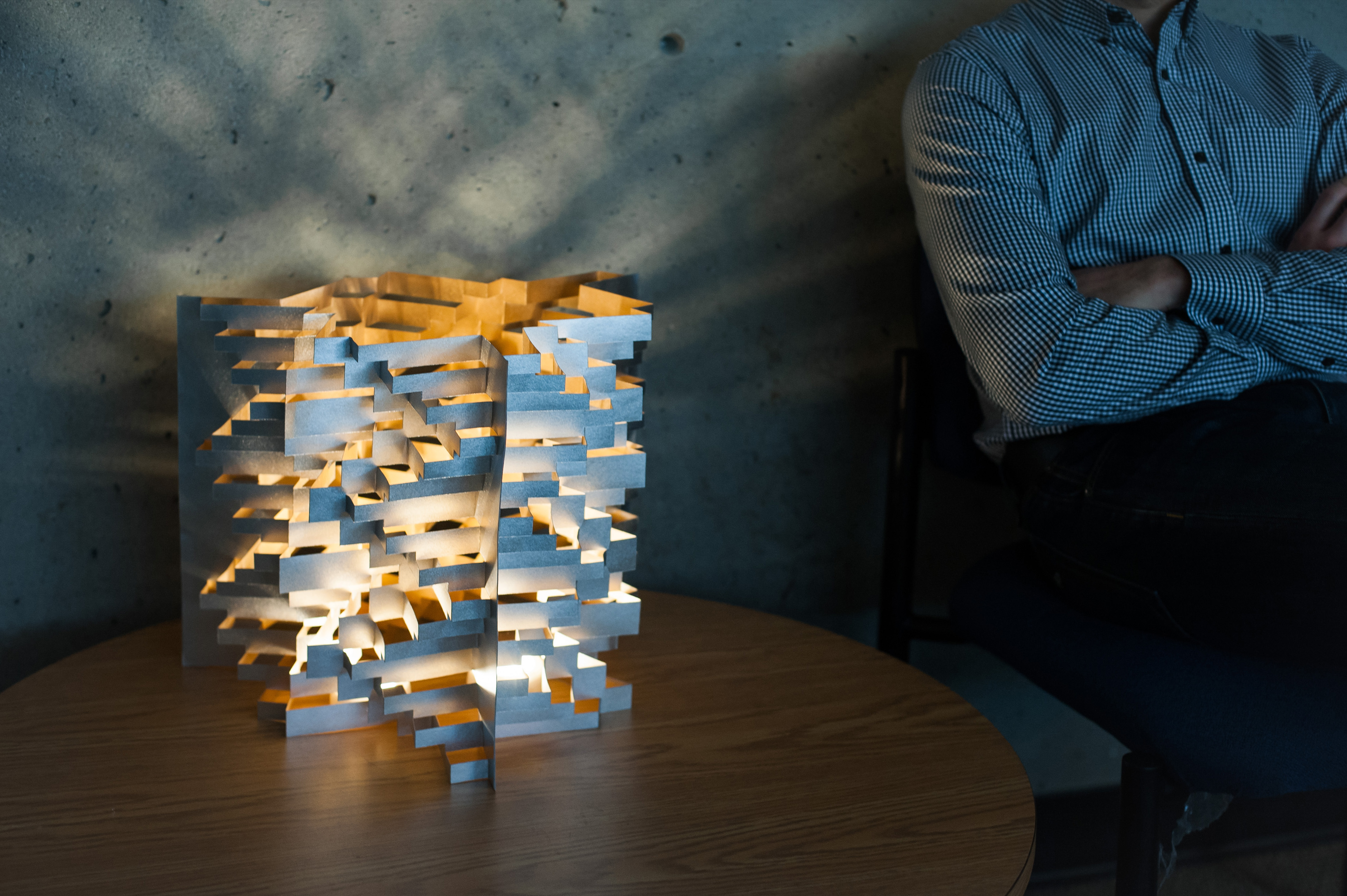 Ata Sina, a master’s student in mechanical engineering, uses computer design software and a heat shrinking polymer substance to create pieces of paper that transforms when heated.