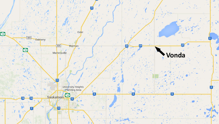 VONDA, Sask. – One man is dead and another is in a Saskatoon hospital after a head-on crash on Highway 27 just east of Vonda, Sask. on Tuesday morning.