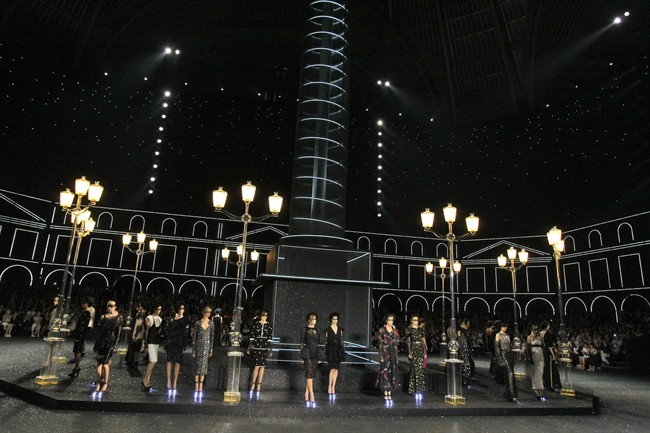 PARIS – When it comes to putting on blockbuster shows, the sky is literally the limit for Chanel. For its fall-winter 2011-12 haute couture collection, the deep-pocketed French label recreated a life-sized model of Paris’ Place Vendome jewelry Mecca – complete with a starry night sky.