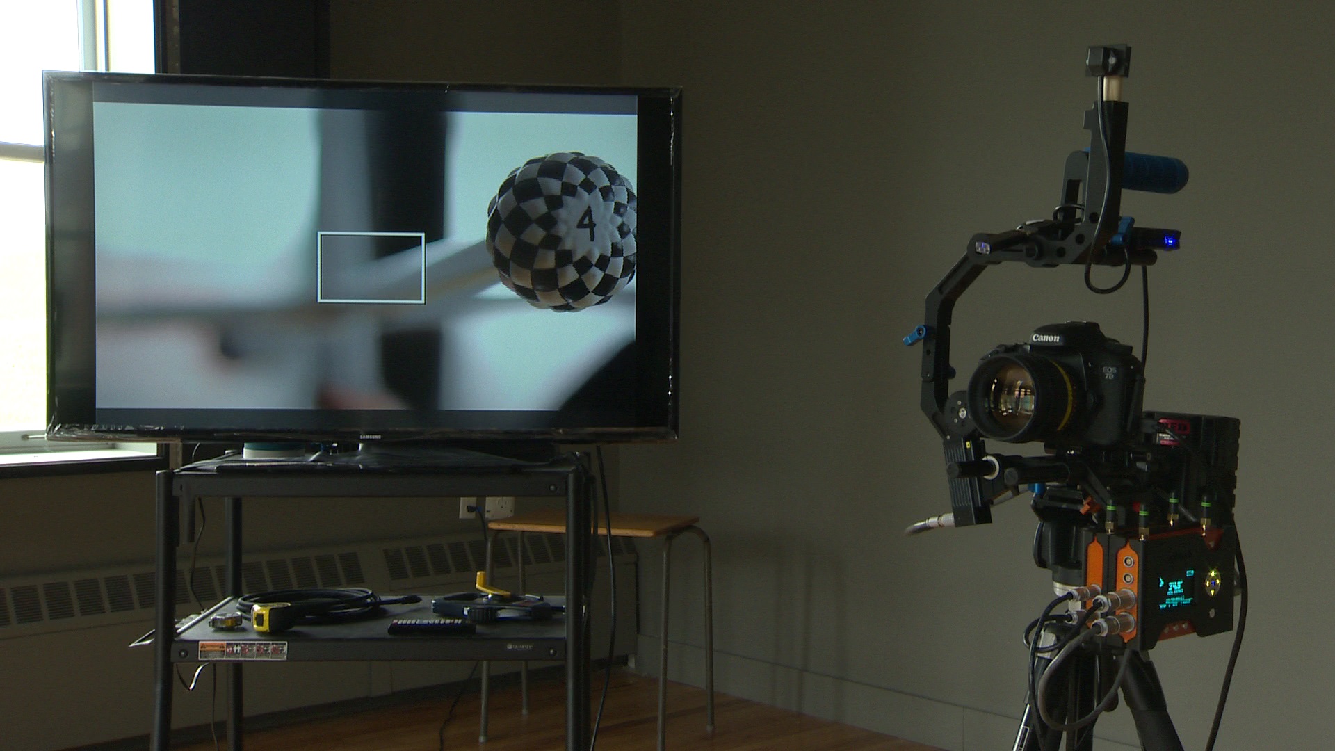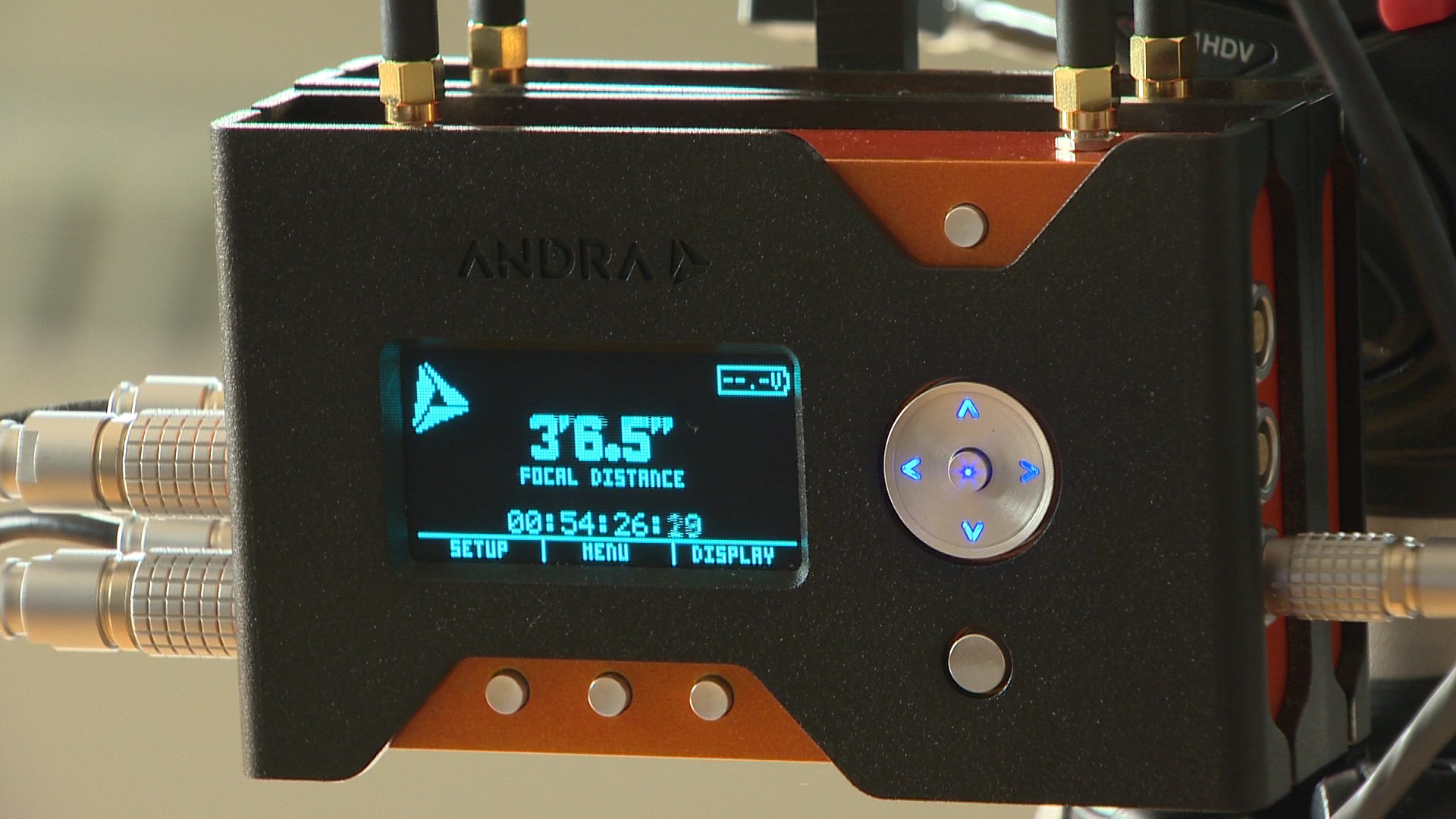 The Andra system attaches to a film or television camera. Using sensors, it adjusts the focus automatically, keeping the subject crisp and in focus no matter where it moves in the shot.