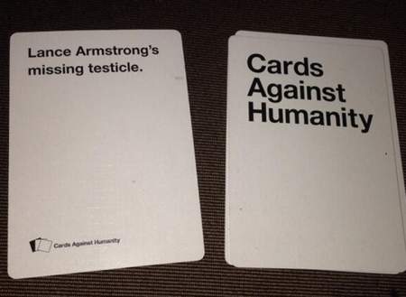 The disgraced cyclist played a game of Cards Against Humanity, a popular party game where players must come up with the funniest responses to statements.