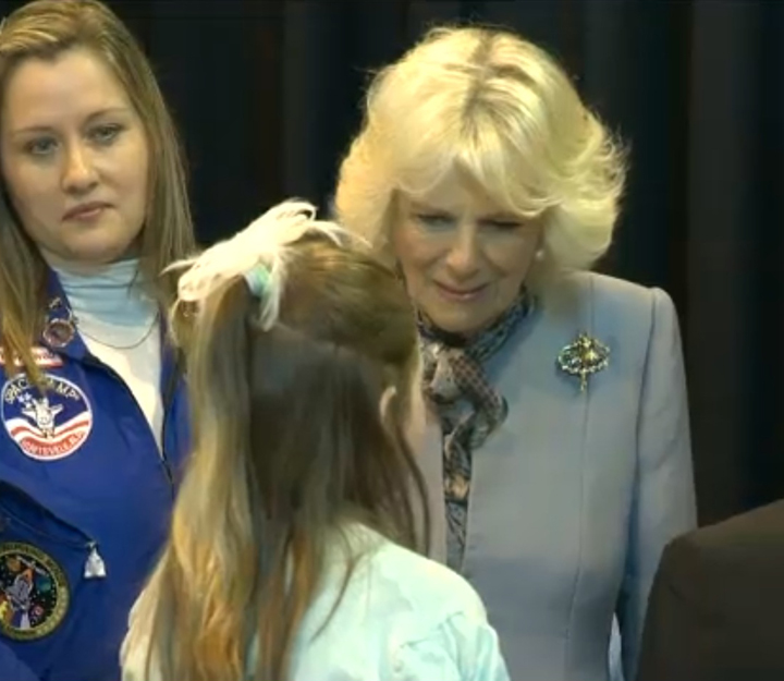 Charles and Camilla took turns throwing paper airplanes folded by children and were presented with a tiny aviator’s jacket for their grandson, Prince George.