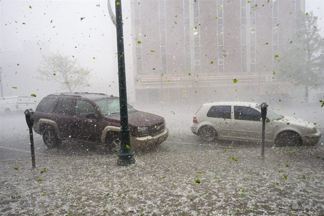 WATCH (above): How often have you heard the phrase “hail stones as big as golf balls”? Well today, in Langley, real golf balls were falling from the sky. It’s all part of a field test for a system designed to prevent the damage from hail. Specifically — the damage to cars. Tanya Beja reports.