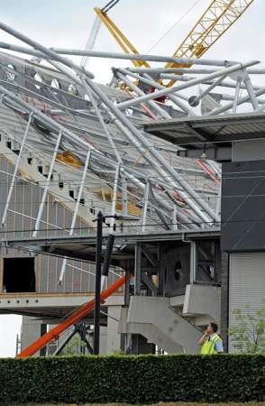 The cause of the collapse was under investigation by workplace inspectors and prosecutors. The construction work aimed to increase the stadium’s capacity to 30,000 from 24,000 by adding a new tier above existing seating.