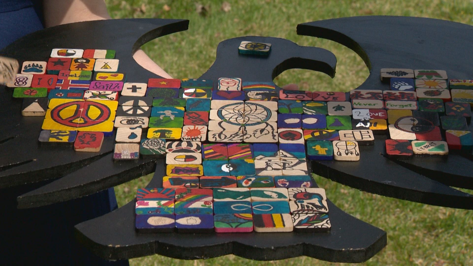 Janessa Stone and three other students drew a dream catcher spanning several tiles, because it represents their Métis culture.