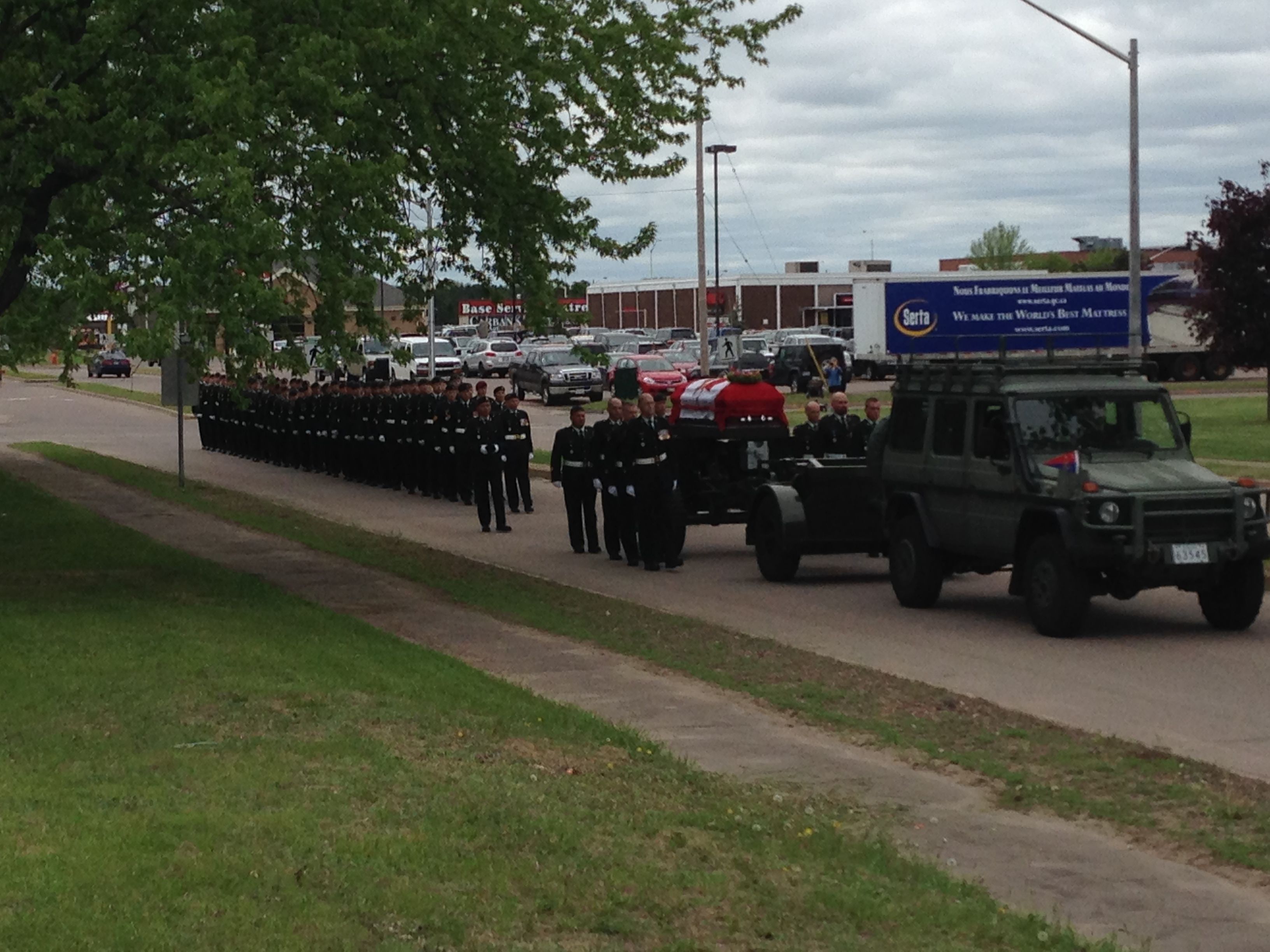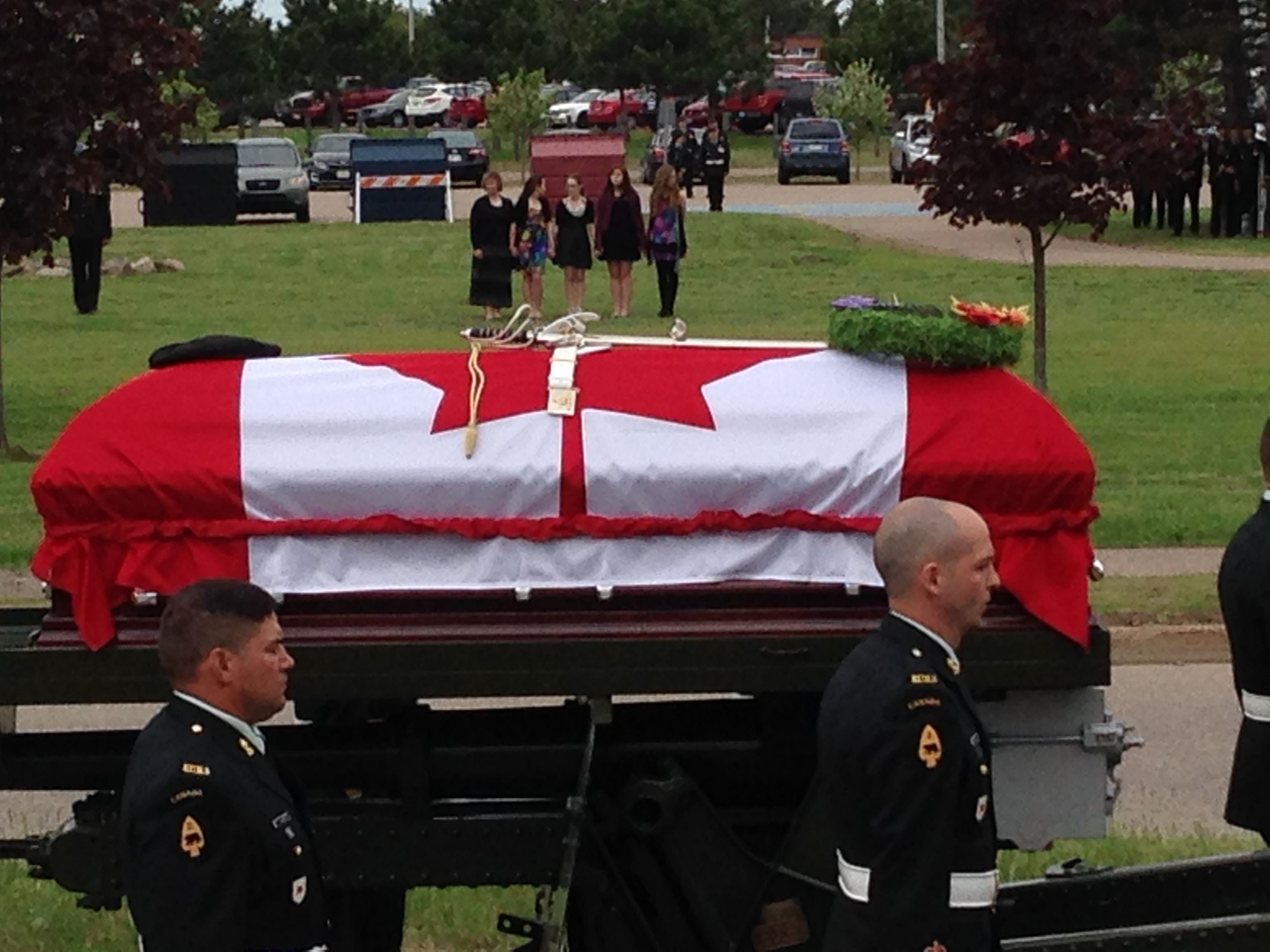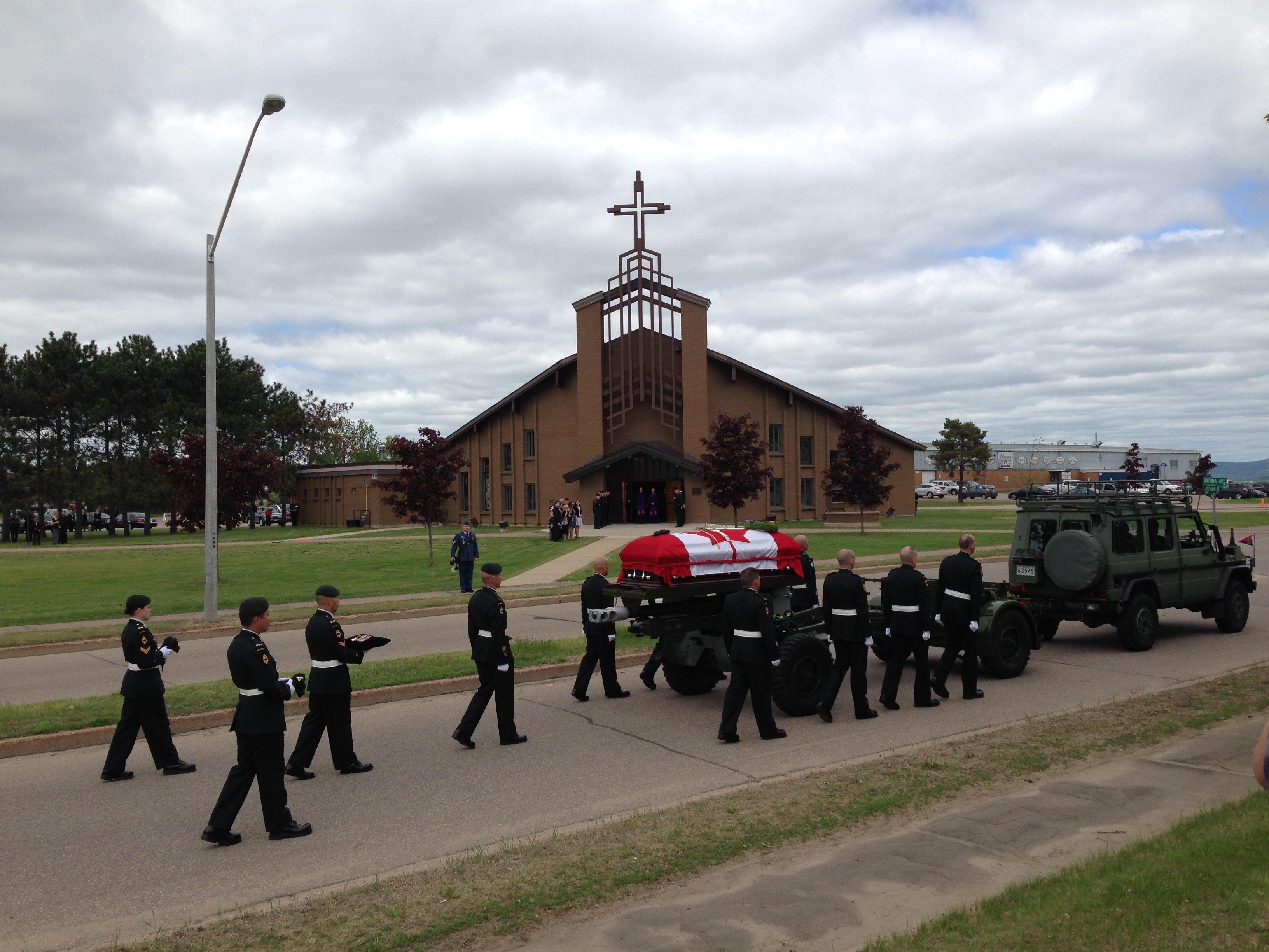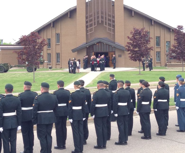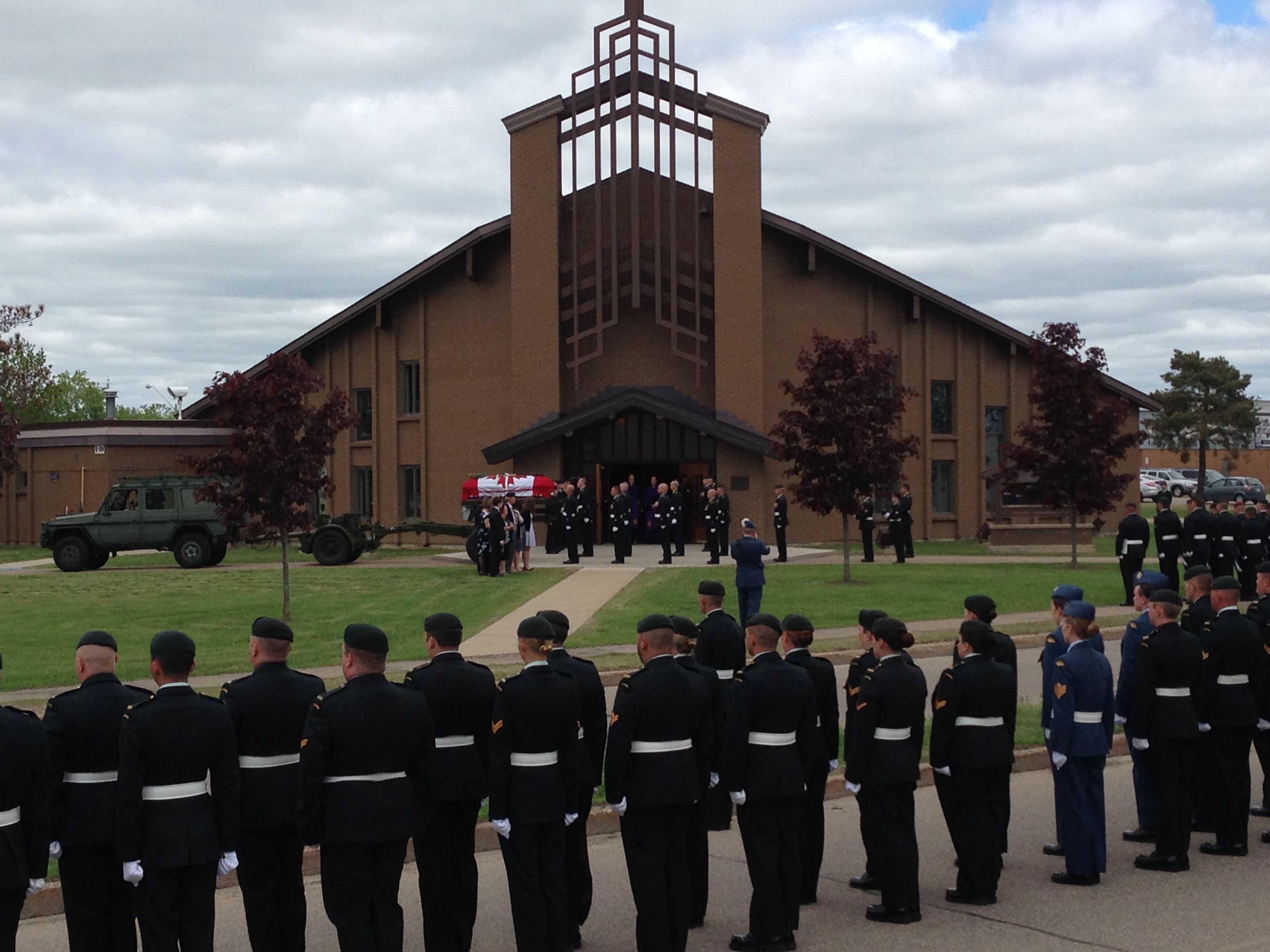 The funeral for the 44-year-old senior senior Canadian Forces soldier was held at St. Francis of Assisi Chapel at CFB Garrison Petawawa, a military base about two hours from Ottawa.