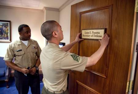 Upon arrival at the Potomac River entrance to the Pentagon, Panetta was greeted by his senior military assistant, Marine Lt. Gen. John Kelly, who shook his boss’ hand and said, “Welcome aboard, sir.” Panetta, briefcase in hand, bounded up the steps and into his 3rd floor office, where he took the oath of office as the nation’s 23rd defence secretary.