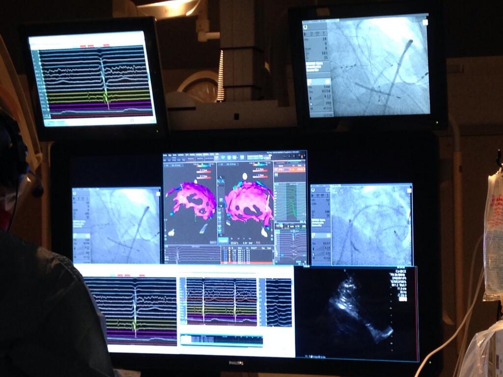 The procedure involves catheters that doctors wield around the heart. The catheters have radio heads so when under x-ray, doctors are able to pick up electrical signals from the heart to then generate a 3D shell of the heart. Procedures can often take up to 10 hours.