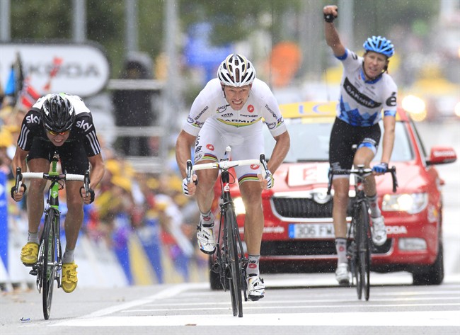 There were just three men left as the finish line neared. And with just metres to go, the Canadian led out Hushovd – his Garmin-Cervelo teammate.