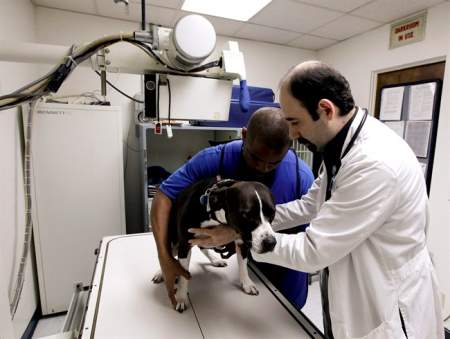 Don Montes, who owns an around-the-clock pet ambulance service in New York, suggests muzzling an injured animal for transport.