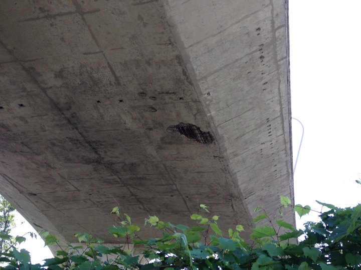 The report also warned that pieces of concrete are at risk of falling from the overpass at different locations including onto highway 20.