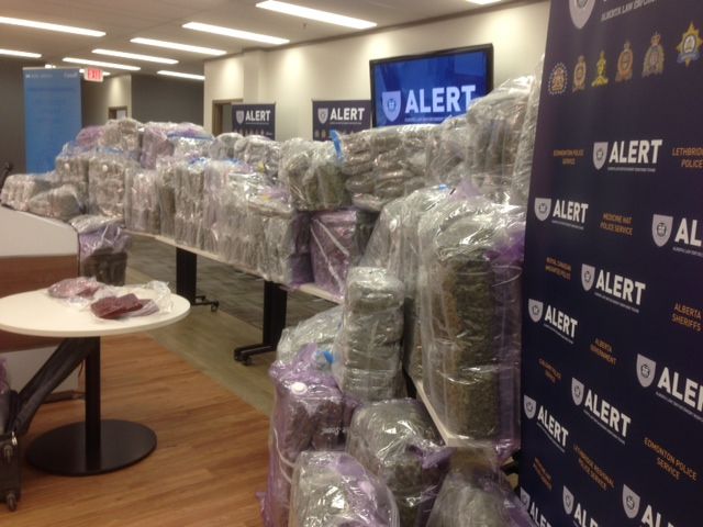 The heroin seizure is the largest in Alberta history. The marijuana seizure is believed to be the largest-ever in Western Canada, surpassing the 200 kilogram bust by Edmonton police in April and a 256 kilogram seizure in B.C. in 2012.