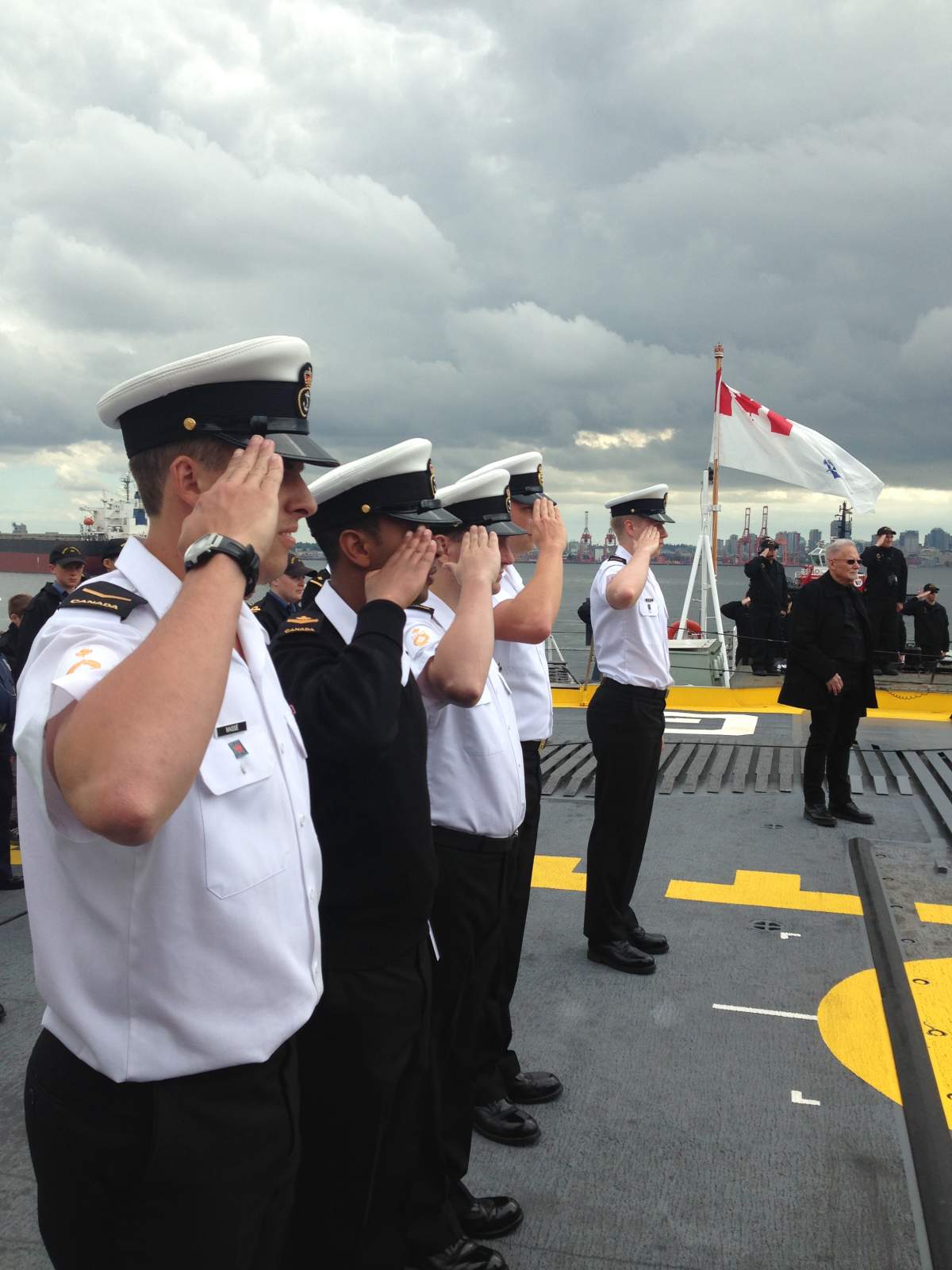 To show off the ship’s refit, HMCS Winnipeg’s crew hosted a day sail yesterday which showed the frigate’s maneuvering capabilities, as well as its new command and harpoon missile systems, radar suite, tactical data links and countermeasures suites.