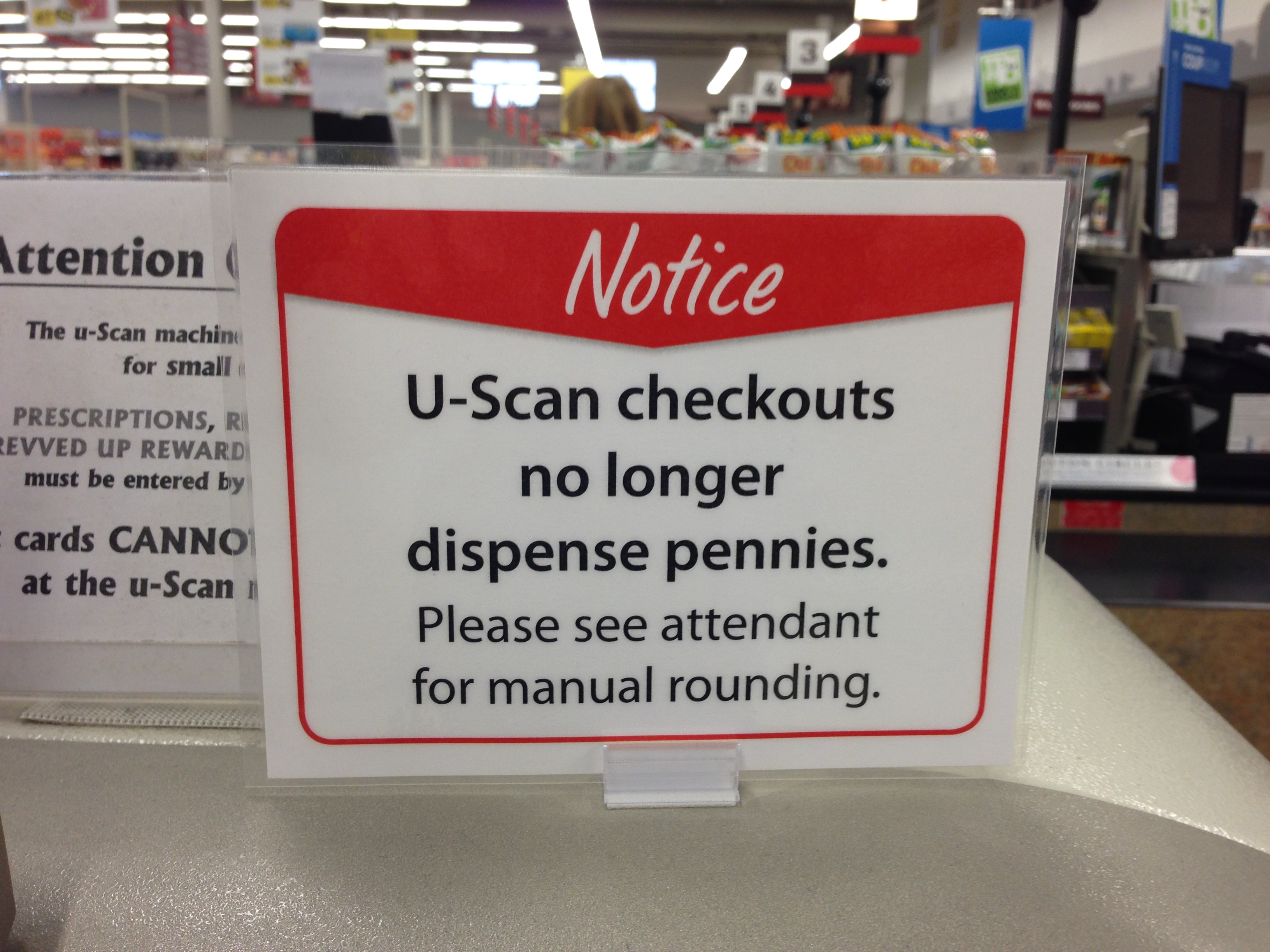 When the government phased out the penny in February 2013, merchants began rounding to the nearest nickel. However, that change hasn’t gone into effect at the self checkouts in Co-op stores.