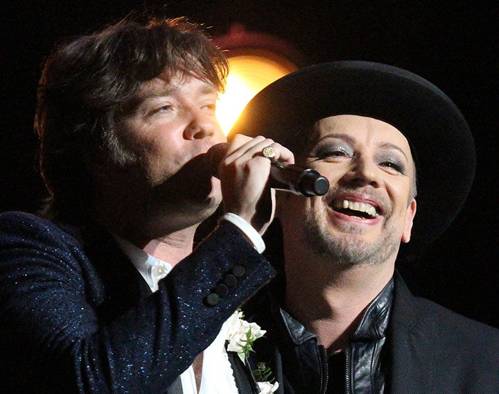 After he and Boy George gave new meaning to “You’re the Top” from Anything Goes, Wainwright surprised the Culture Club singer with an audience sing-along of “Happy Birthday.” Boy George, celebrating his 53rd, then blew out the candles on a cake that was brought out on stage.