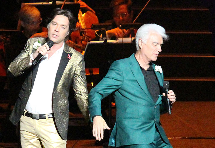 Saturday’s show had at least one mic misstep (prompting Wainwright to order the orchestra to start over), some shaky vocals (notably Byrne) and some obvious reading of lyrics from the TelePromTers facing the stage — but the audience appeared to love every moment.