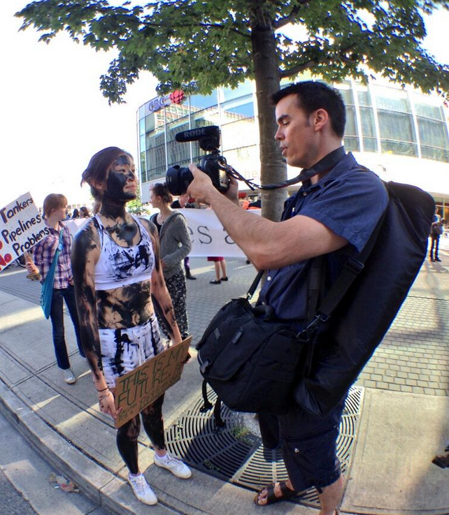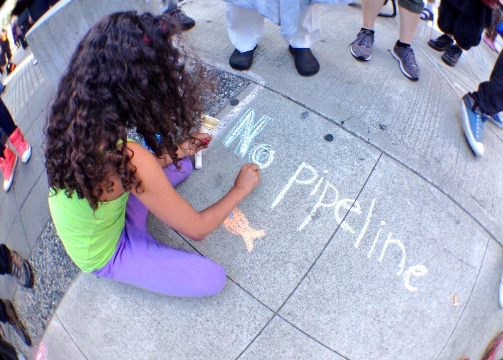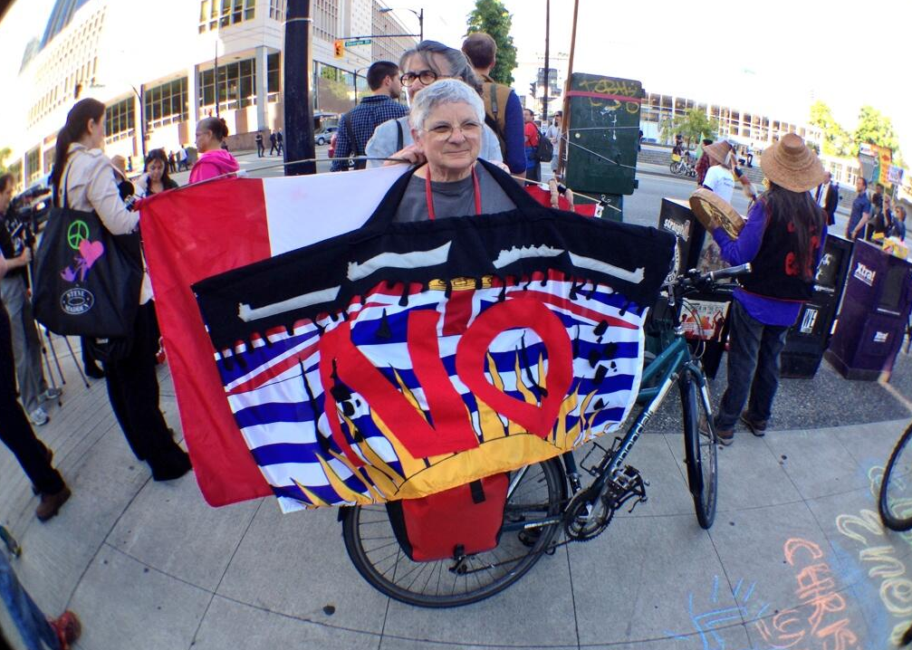 Many people carried signs, chanting ‘No pipelines!’, ‘No tankers!’ and ‘Defend our coast!’