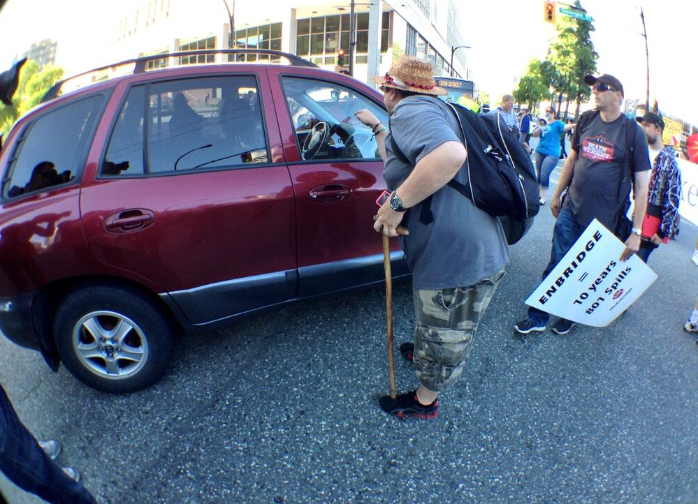 The protesters also blocked the Cambie Street Bridge as they crossed it, although it was a smaller crowd by that time.