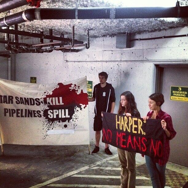 VANCOUVER – Four opponents of the Northern Gateway Pipeline were arrested following a protest at the constituency office of Port Moody MP James Moore. He is also the federal Industry Minister.