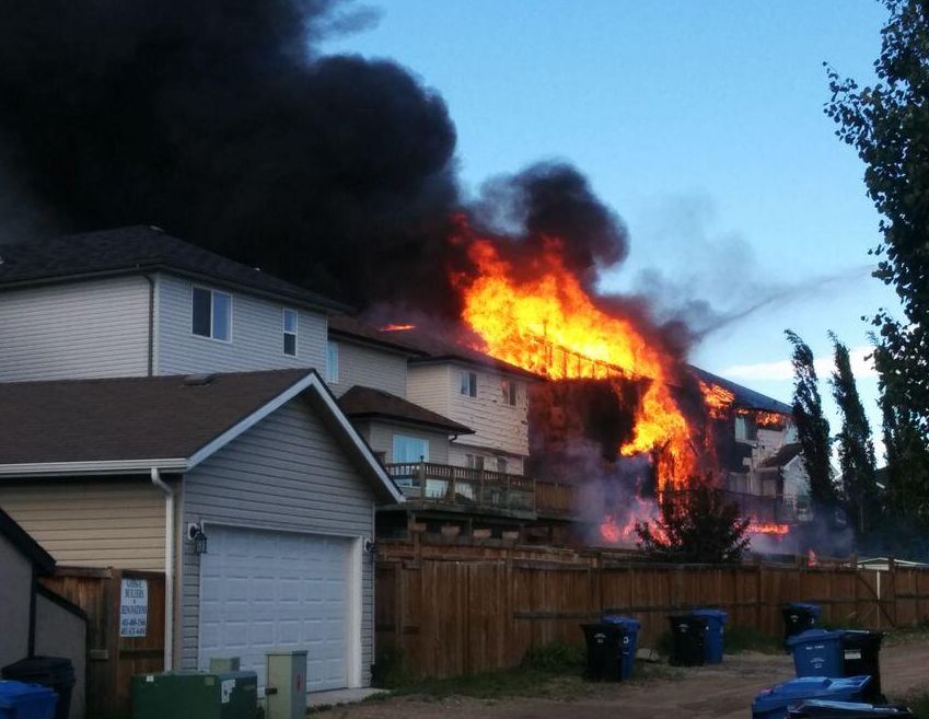 The blaze was sparked around 5:30 p.m. in the community of Evanston, and a huge plume of black smoke could soon be seen around the city. Officials believe the fire started on a back deck.