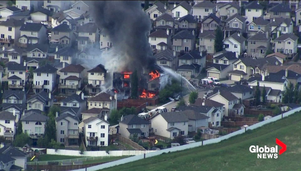 One home was fully engulfed in flames, and footage from the Global News helicopter showed the fire spreading to at least two neighbouring homes.
