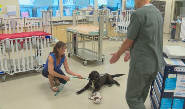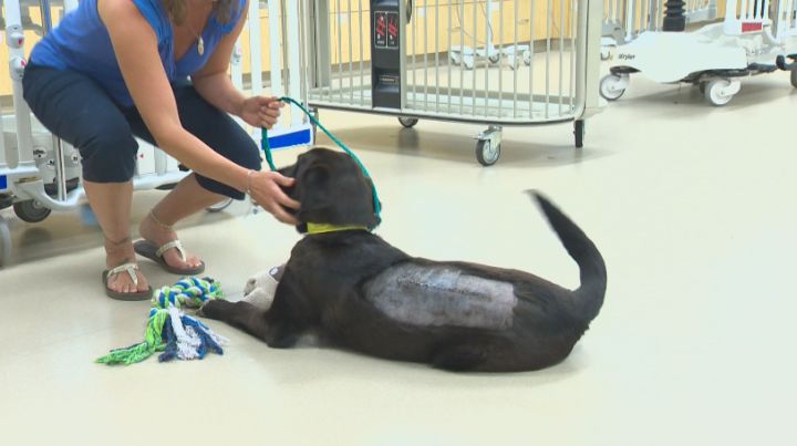 EDMONTON – A local animal rescue group says it’s shocked to see how well a young dog is recovering, just days after going through rare, life-saving back surgery.