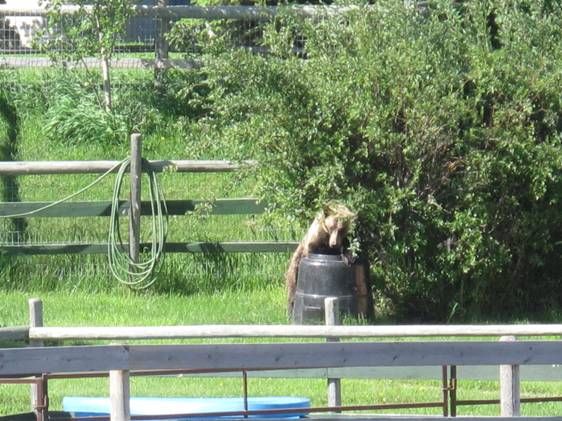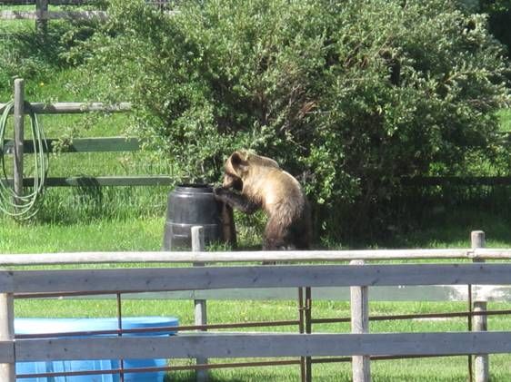 The grizzly was seen on Saturday morning, and passed through a number of yards. It stopped at one home to eat out of a compost barrel, before heading west.