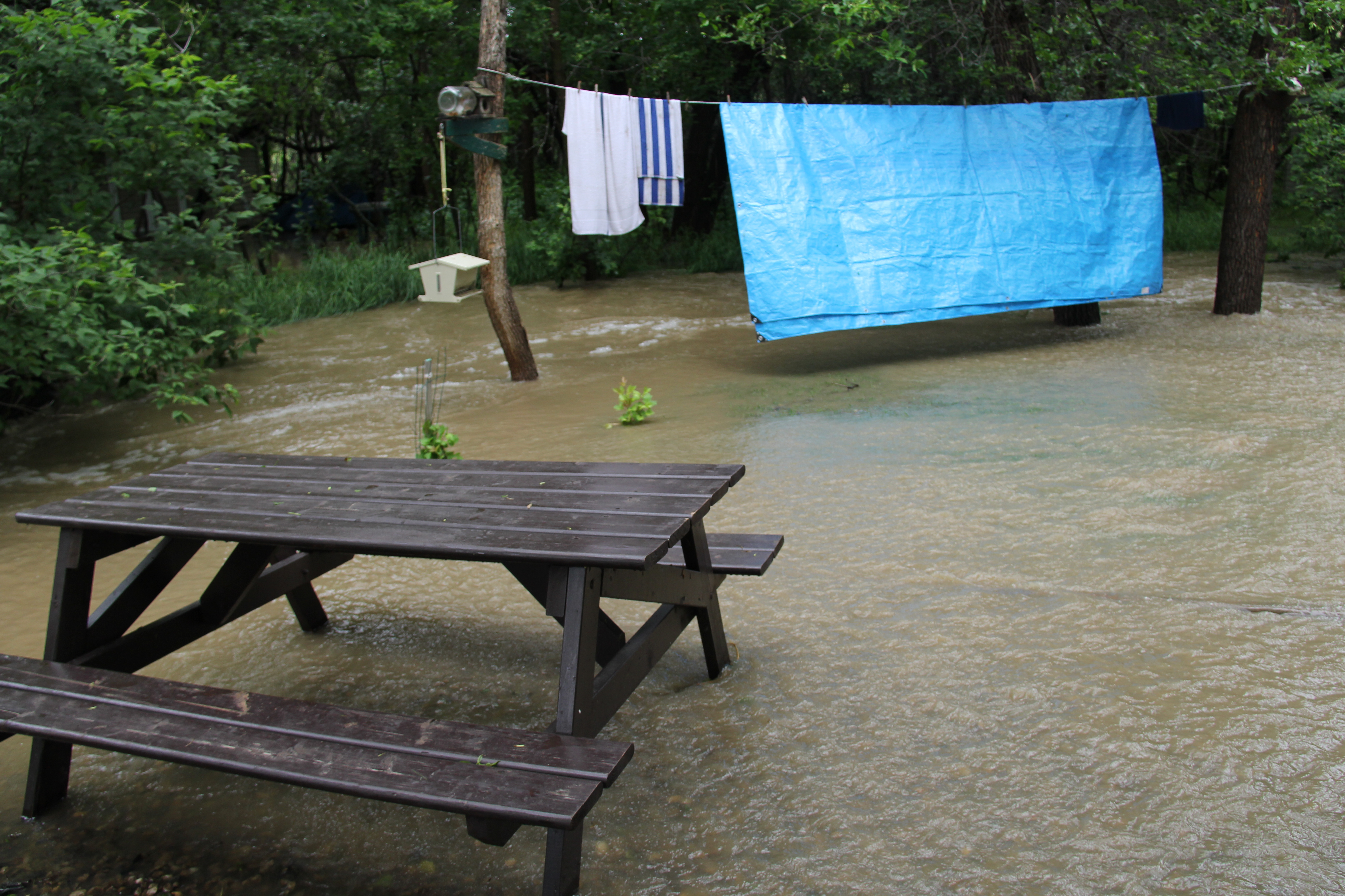 The town itself also experienced flooding: the motel was evacuated early Monday morning. The town’s mayor is concerned about erosion of the town’s spillway; directly behind it is a hospital and seniors’ home.