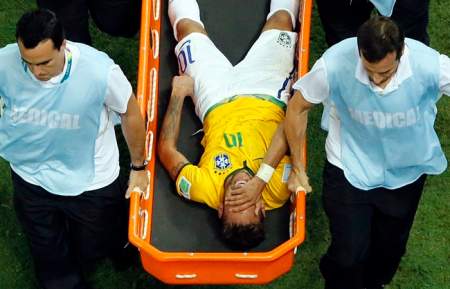Neymar was kneed in the back by Colombia defender Juan Camilo Zuniga in the second half of Brazil’s 2-1 win, and was in tears when he was carried off the field on a stretcher.