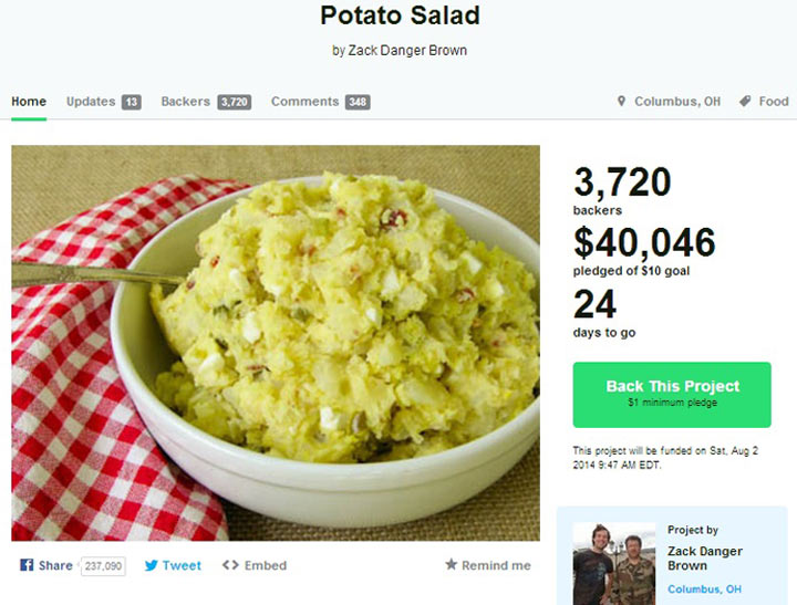 “$10 seemed like a good, conservative goal. I think the people are responding to the opportunity to come together around something equal parts absurd and mundane. Potato Salad isn’t controversial, but it seems to unite us all.”