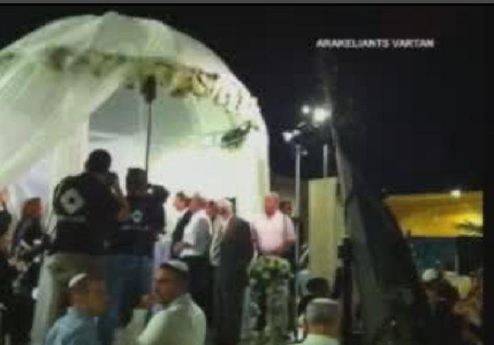 Israel’s Iron Dome anti-missile system intercepted two rockets, one of them directly over the wedding ceremony.