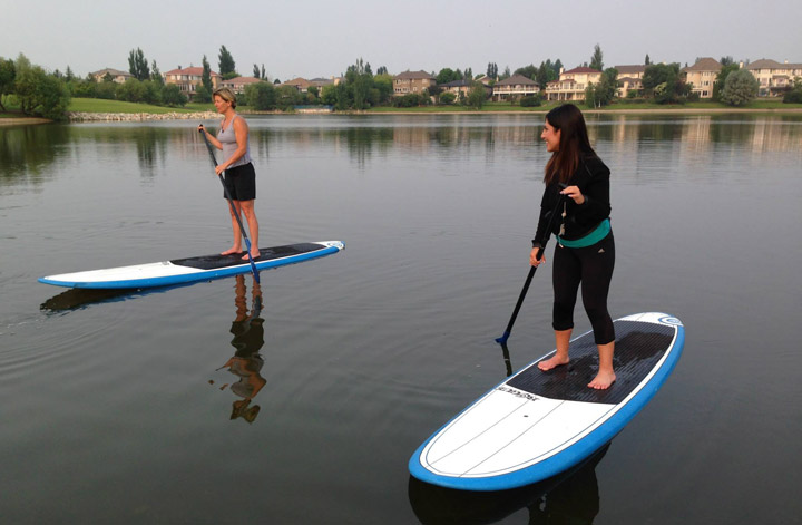 SUP Saskatoon teaches paddleboard yoga at Pike Lake Provincial Park.