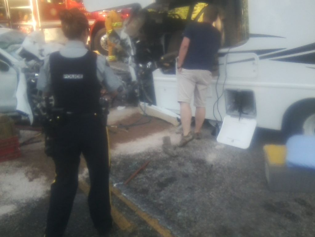 “We drove up to the scene and the car was jammed under there,” said Adam Helman, a tow truck operator. “The firefighters were trying to get the only survivor out of the motorhome, and that took a couple hours to get him out and then they airlifted him out of there.”