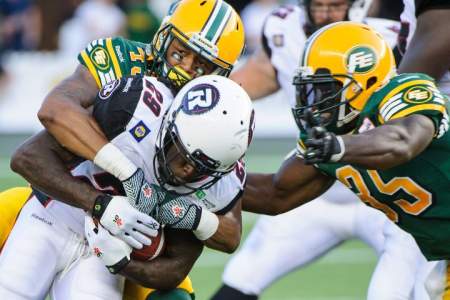 EDMONTON – Adarius Bowman reeled in three touchdown passes as the Edmonton Eskimos came away with a 27-11 victory over the expansion Ottawa Redblacks on Friday.