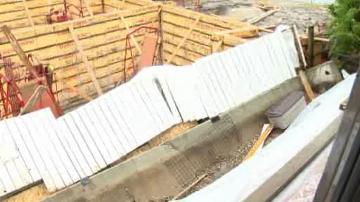 The wall pushed the form on top of one man. The worker was transported to hospital but sustained only minor injuries.