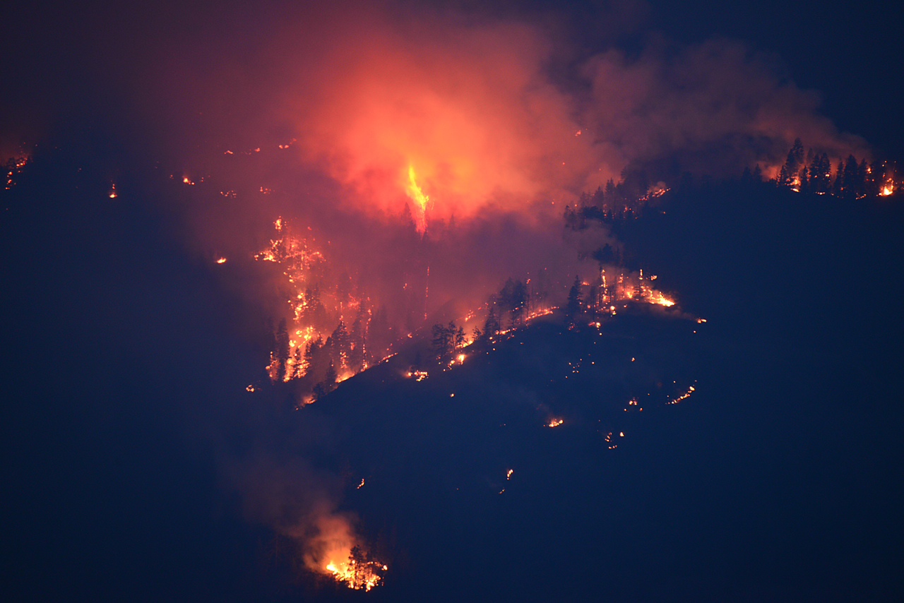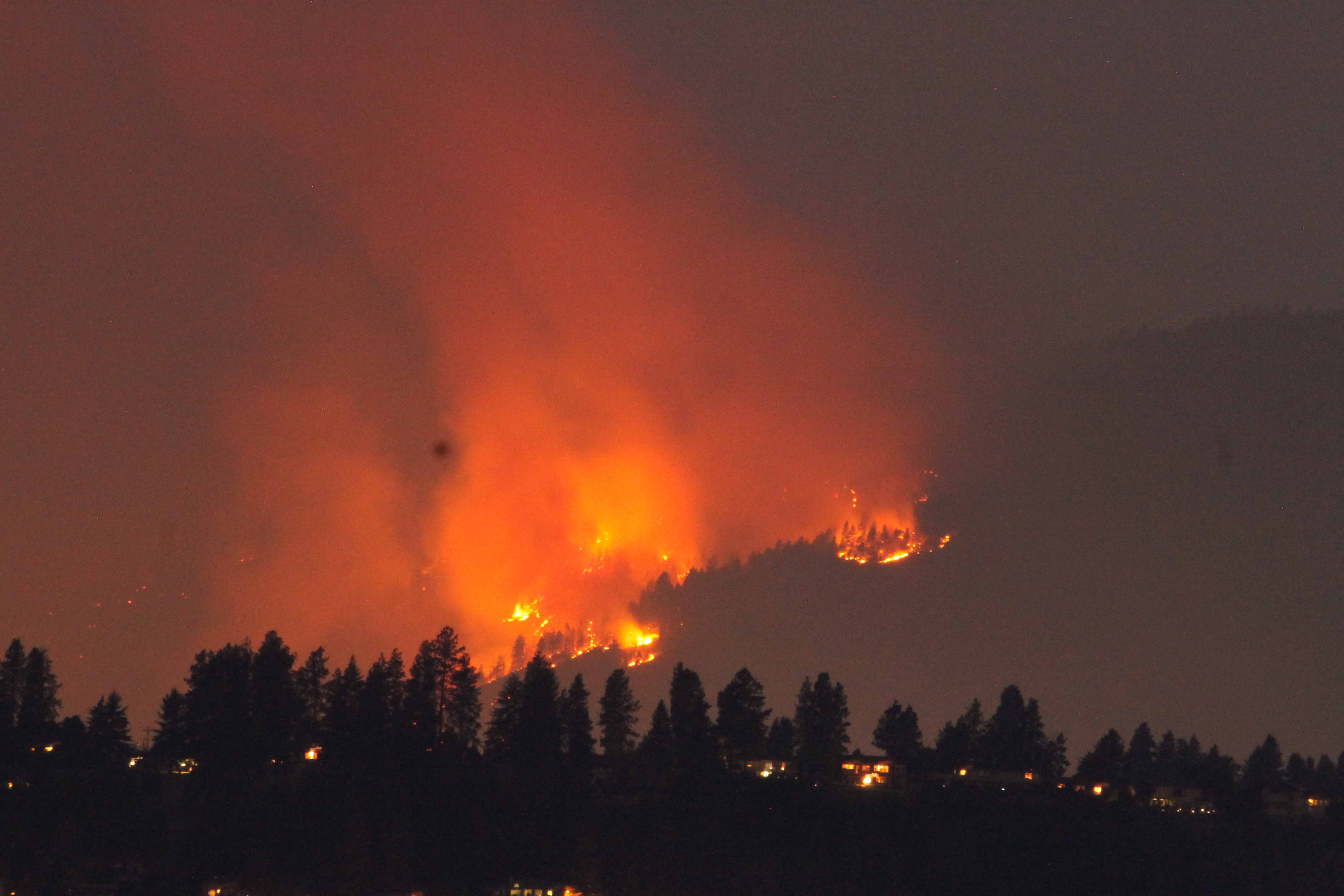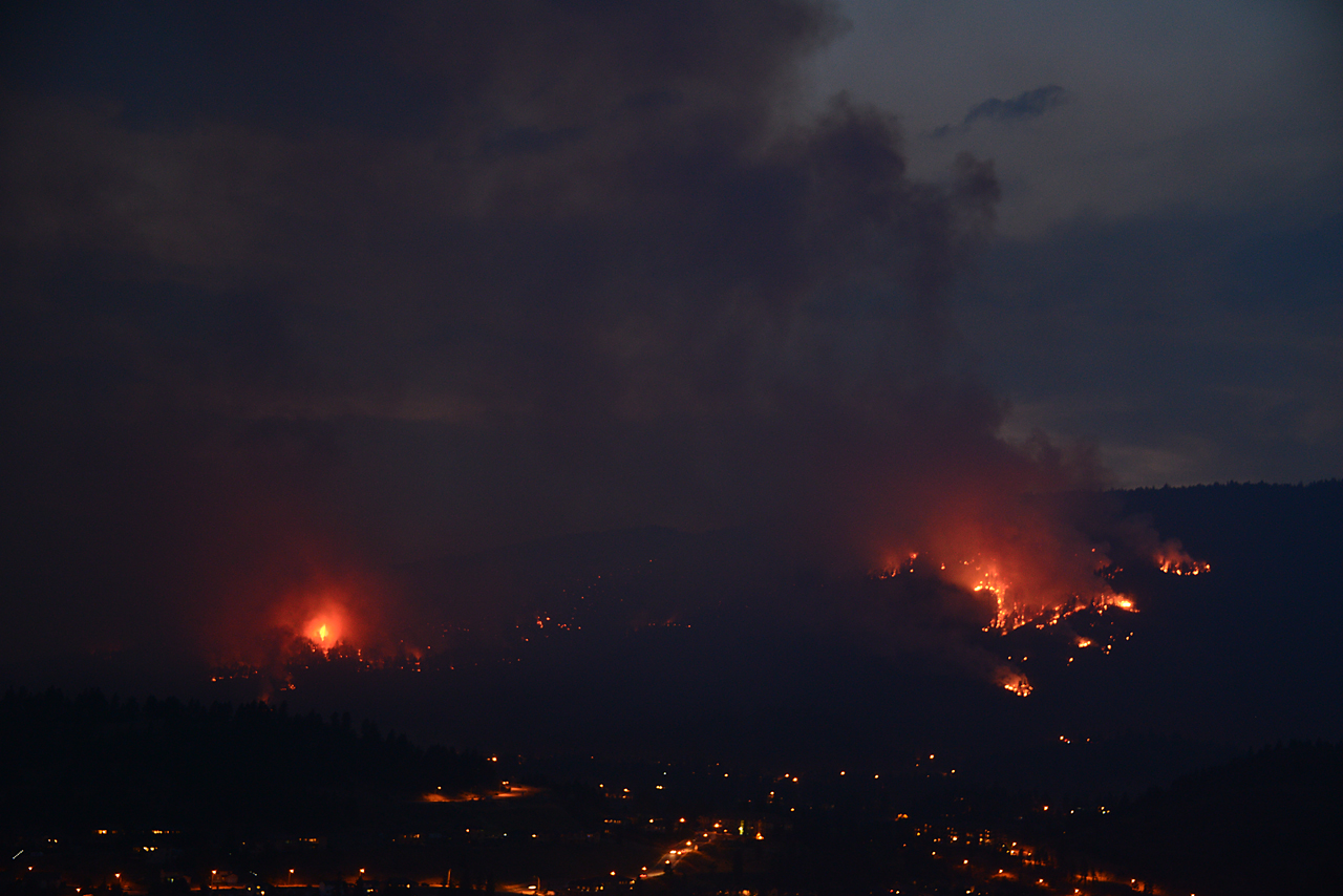 UPDATE 9:00 a.m.: The Smith Creek fire is now 60 per cent contained and remains at 260 hectares. Crews say the cooler, cloudy weather has continued to help with this fire fight. An evacuation order is still in place for 300 people in the Tallus Ridge neighbourhood that are accessed via Mountains Hollow Lane and for properties accessed via Dixie Road in the Smith Creek neighbourhood.