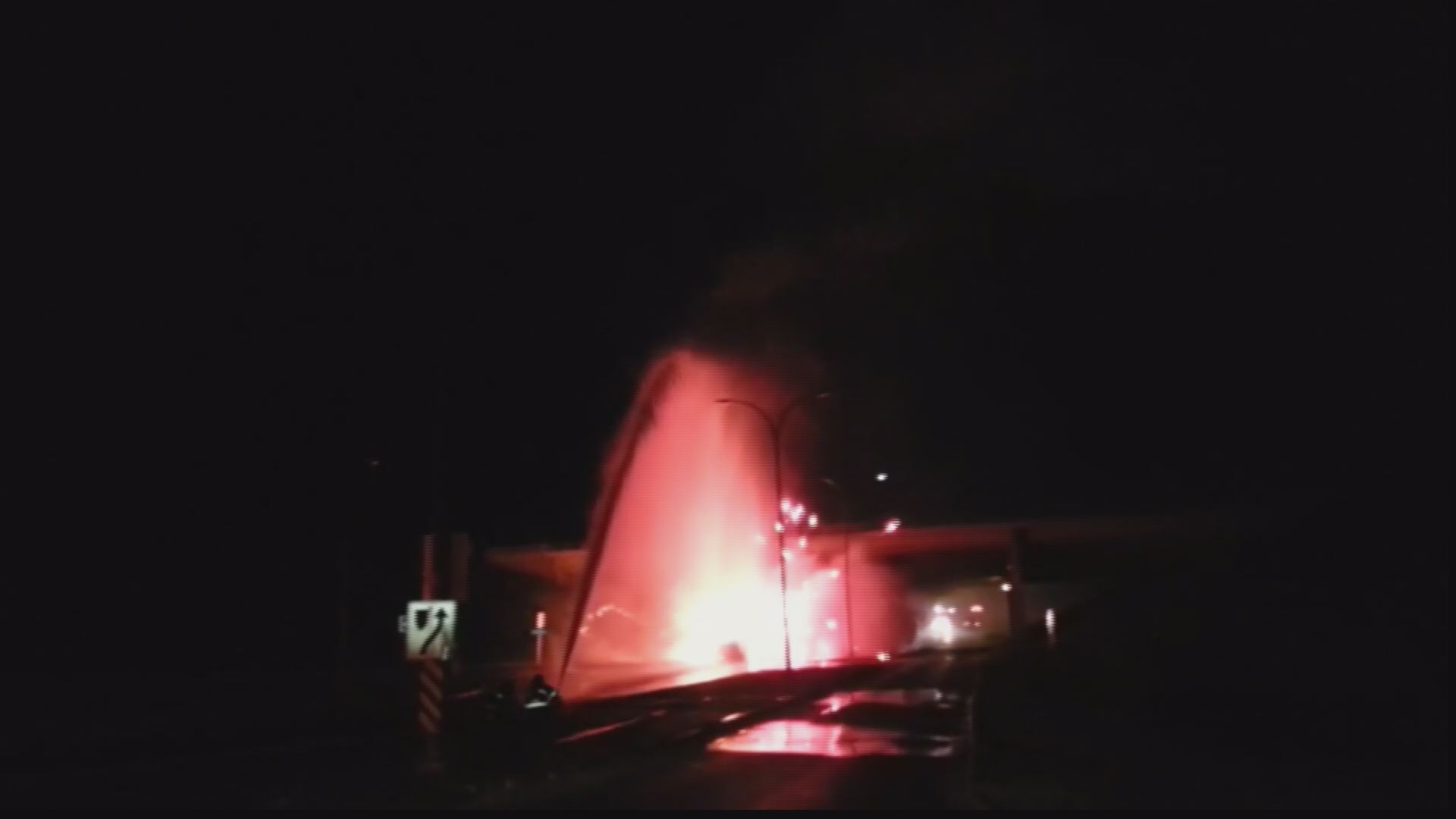 The truck was already up in flames in when firefighters arrived just after 10 p.m. Wednesday on the Highway 1 overpass.