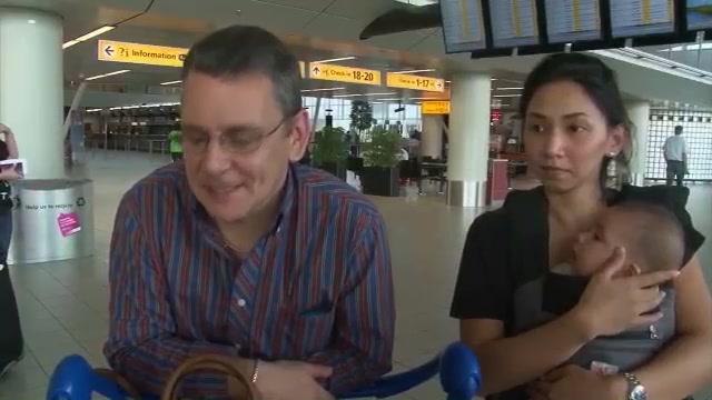 Izzy Sim and her husband, Barry, were supposed to fly with their newborn baby from Amsterdam to Kuala Lumpur Thursday.