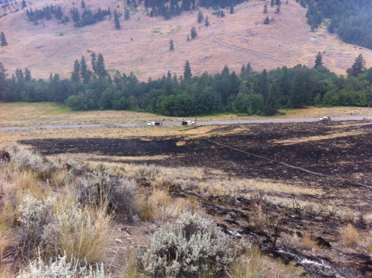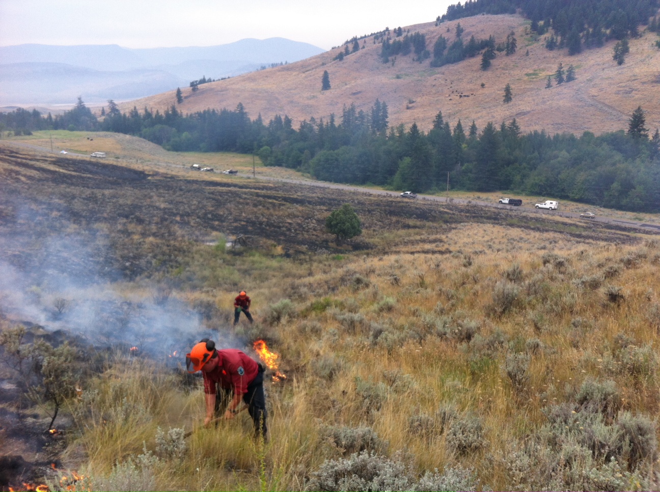 The six hectare blaze broke early Tuesday along the side of the road near the White Lake – Grand Oro junction.