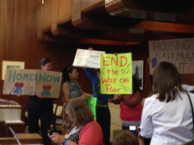 “Do not see us as troublemakers, see us as human beings who are standing for the inalienable rights that the rest of us have enjoyed our whole lives – homes, safe and comfortable,” said protester Audrey Siegl at the council meeting.