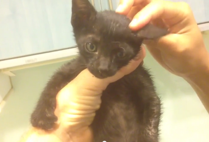 “This little guy was spotted at the edge of a dangerous road in the aftermath of Typhoon Matmo as it swept over northern Taiwan,” said Sean McCormack, who uploaded the video onto his YouTube and Facebook accounts. “When rescued, he was cold, wet, and almost lifeless.”