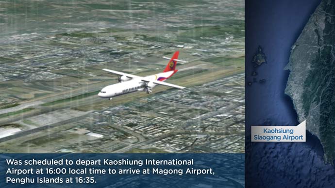 The crash of flight GE222 was Taiwan’s first fatal air accident in 12 years and came after Typhoon Matmo passed across the island, causing heavy rains that continued into Wednesday night. Some 200 airline flights had been cancelled earlier in the day due to rain and strong winds.