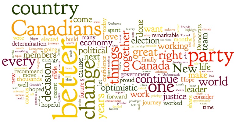 RIP Jack. Words are difficult to find to express the sorrow that is being felt by all Canadians … Canada has lost a champion today. Your passion for a “fairer, more equal country” will long be remembered & will become the bar against which others will be measured in the future. Blessings and peace.