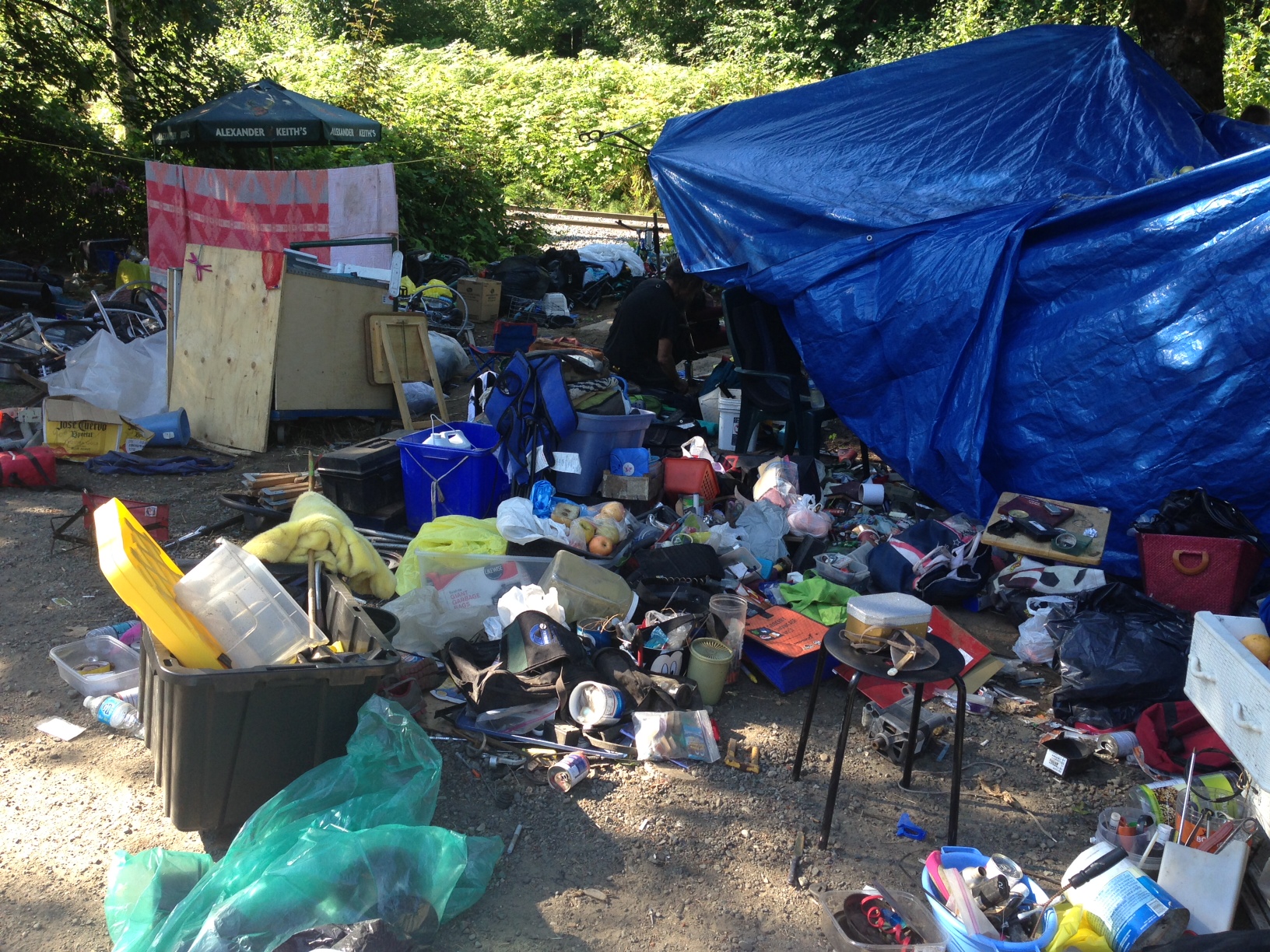 Last year, the City of Abbotsford dumped chicken manure on the site in an attempt to remove the encampment. The city later apologized for the incident.